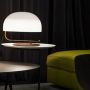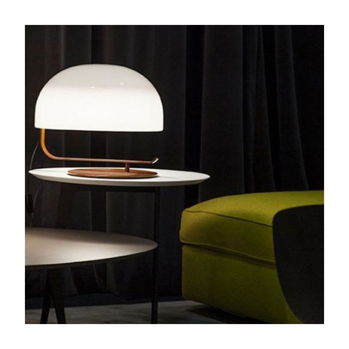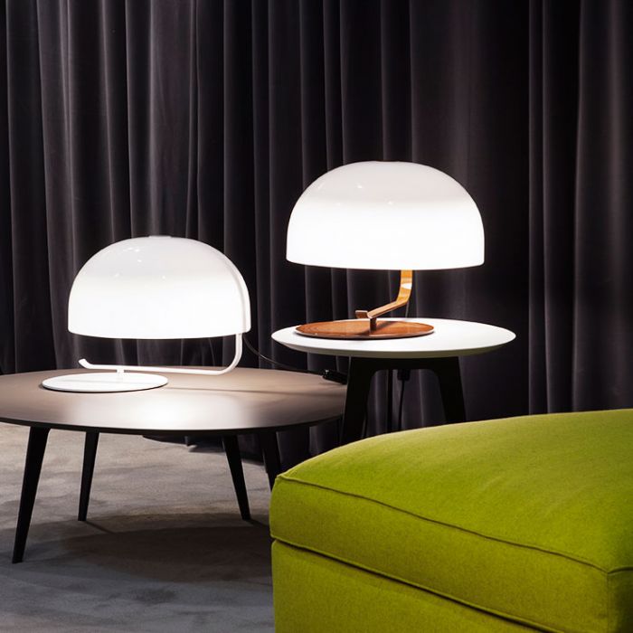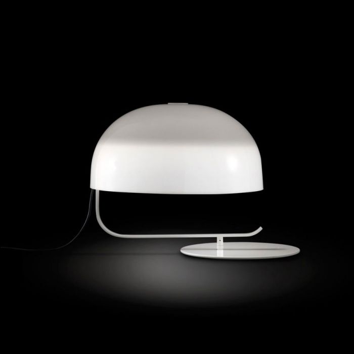 Elaborée entre 1963 et 1965, le Zanuso 275 a été conçue comme une lampe de bureau. A noter qu'il n'a pas été conçu comme une lampe opérationnelle, mais plutôt pour résoudre le problème de l'éclairage sur une table de travail placée dans un environnement non adéquat pour un bureau. Telle est la raison derrière le grand dôme de méthacrylate soutenu par un bras courbé, mais surtout le mécanisme cinématique imprévisible, à la limite de statique. En effet à partir de la position initiale repliée où le diffuseur est superposé à la base circulaire, avec pratiquement le même diamètre, une rotation le porte à une position excentrée. D'un côté, il reste la circonférence de la base, de l'autre celle de la tête: l'effet est particulièrement marqué lorsque la structure est peinte en noir, créant ainsi un cercle noir et un blanc, un cercle lumineux sur la table. Aujourd'hui, le Zanuso 275 est «voir la lumière» à nouveau, représentée d'une façon philologique aussi grâce à la collaboration avec les héritiers de Zanuso. Iconique dans sa forme, il peut être utilisé non seulement au bureau, mais en général sur toutes les tables de toutes tailles, son rôle principal étant d'éclairer une partie d'une pièce.